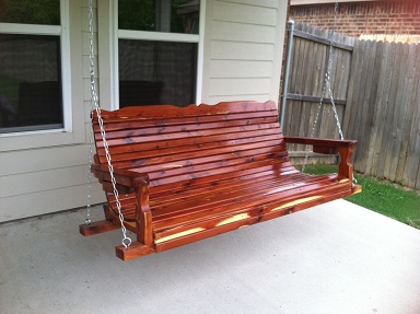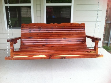 Our bench swing is a very popular item. We can custom build them to the length you request. We also offer a bueatiful A-Frame, built from cedar post, as an option to hang your swing.